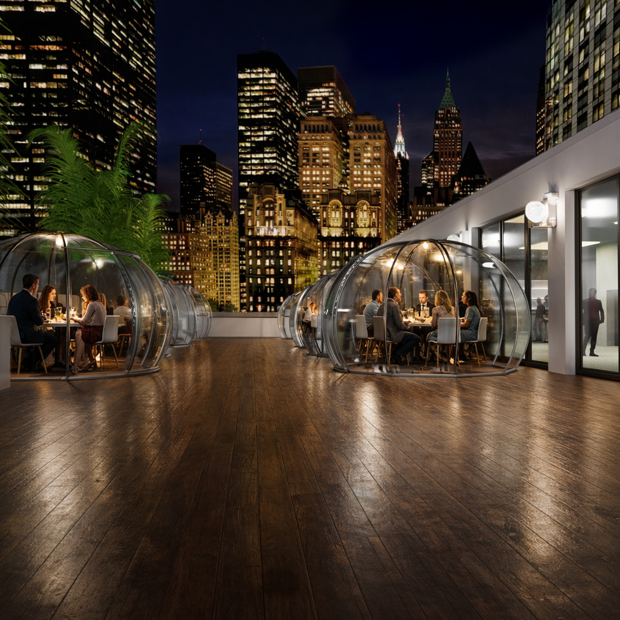 Discover the perfect blend of style, comfort, and ambiance. Our signature igloo is designed to stay secure, feel private, and enhance the experience with panoramic views—making it the ideal extension for restaurants that want to line-up reservations while charging at a premium.