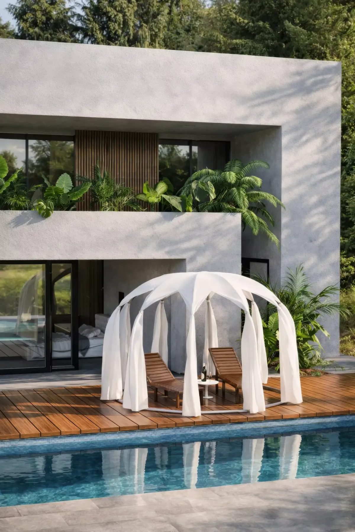 Discover the perfect Igloo cover for style, comfort, and attention magnet during hot Summer days. Our signature Astreea Canopy is designed to stay secure, fit your Astreea Igloo MAX, and offer protection and an elegant view, perfect for receptions, summer cocktails and breezy dinners. Your experience—making it the ideal spot for all who want more than just to eat out.